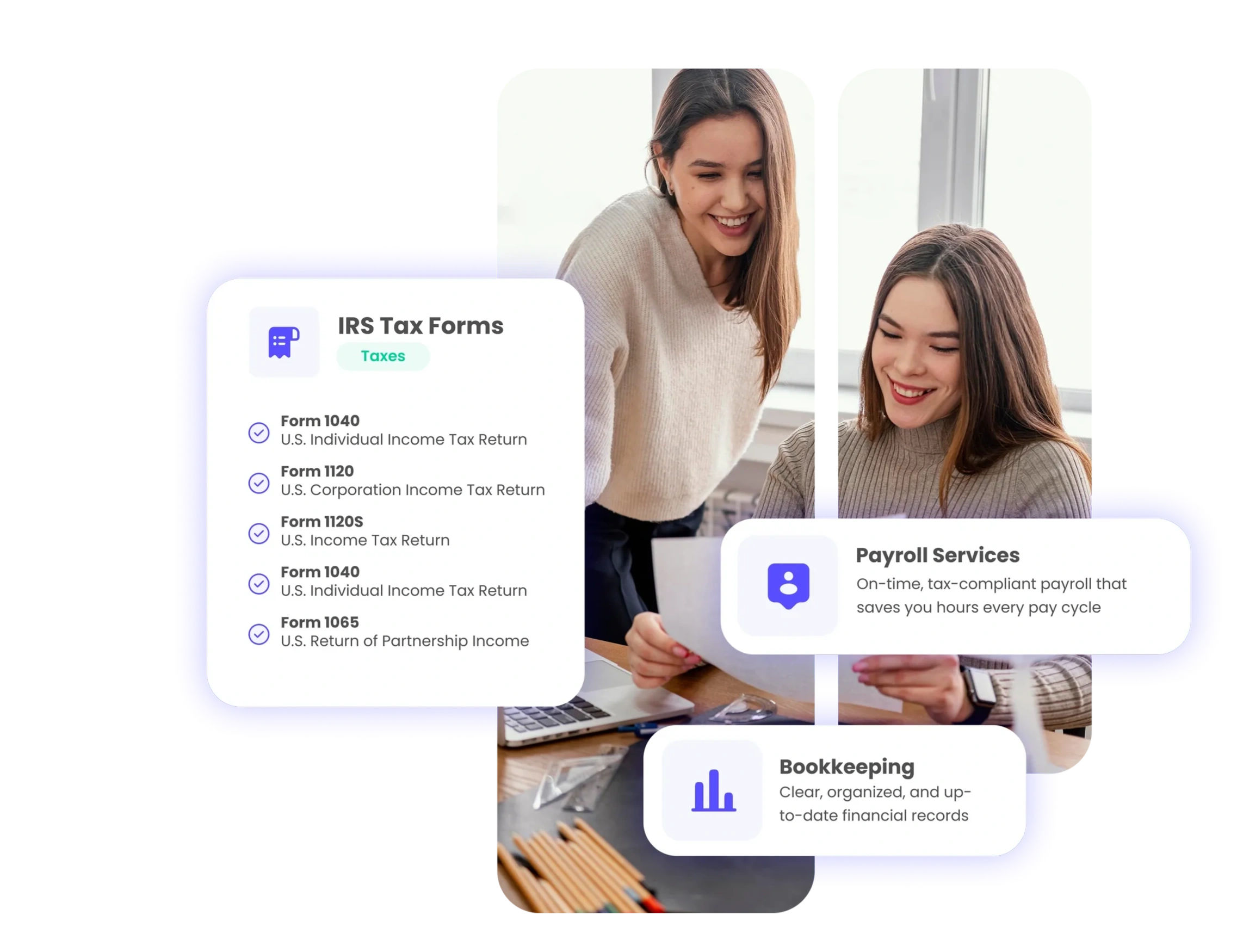 From taxes to payroll, bookkeeping, and business formation — get expert support that saves you time, reduces stress, and keeps you compliant.